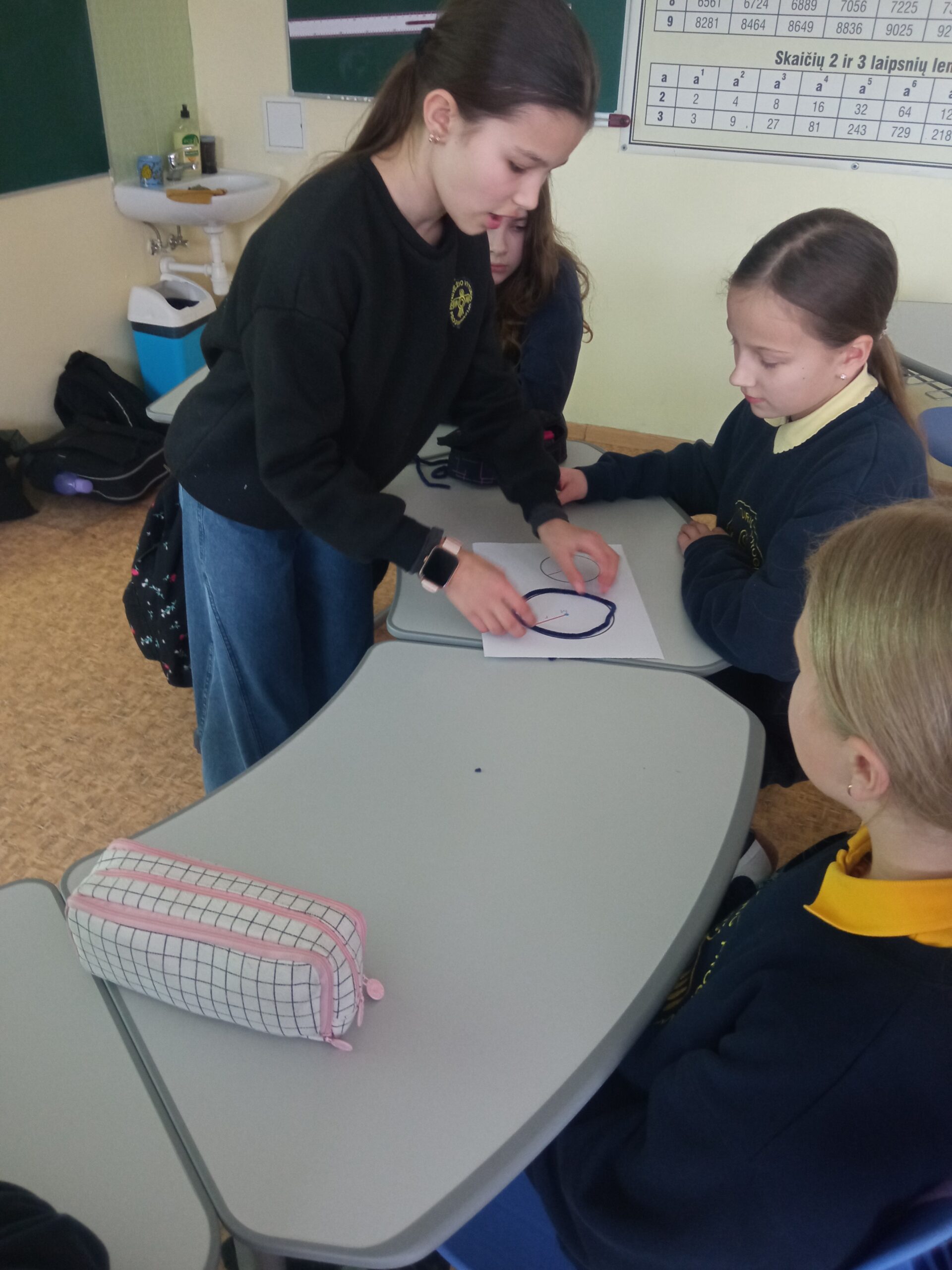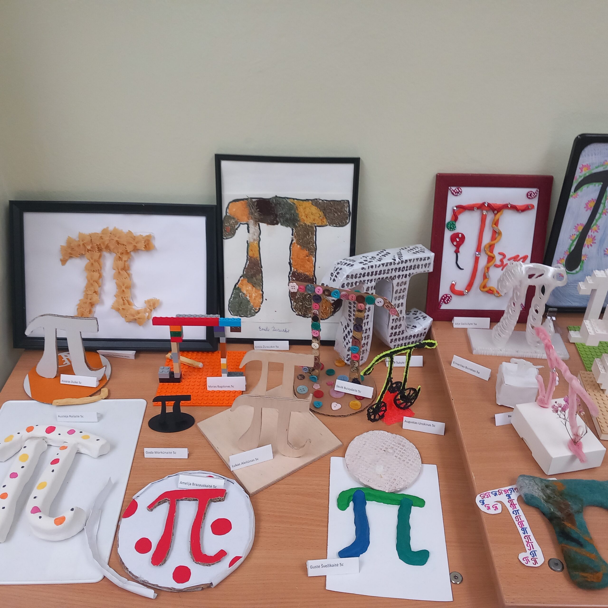 Šiandien 5-8 klasių mokiniai matematikos mokėsi kitaip – pamokose pristatė ilgalaikius STEAM projektus ,,𝛑 diena – 03-14”; įsijautę į mokytojų vaidmenį vedė pamokas bendraklasiams, atlikdami užduotis, prisiminė apskritimo ir skritulio lanko ilgio ir ploto formules, atliko bendraklasių sukurtas interaktyvias užduotis, geriausiai atlikę užduotis mokiniai apdovanoti savo pačių kurtais prizais – saldumynais. Akį traukė žaisminga paroda, kurioje buvo demonstruojami įvairūs mokinių sukurti darbai, kuriuose įkomponuotas skaičiaus 𝛑 simbolis.