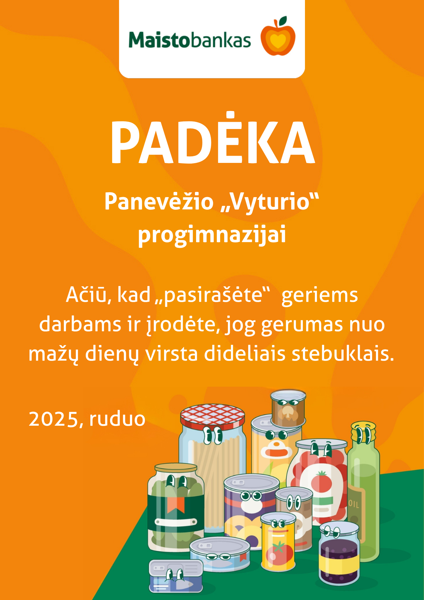 Nuoširdžiai dėkojame visai mokyklos bendruomenei – mokiniams, jų tėveliams, mokytojams ir darbuotojams – už aktyvų dalyvavimą ir geranoriškumą. Kiekvienas Jūsų paaukotas produktas prisidėjo prie pagalbos tiems, kuriems šiuo metu labiausiai reikia paramos.