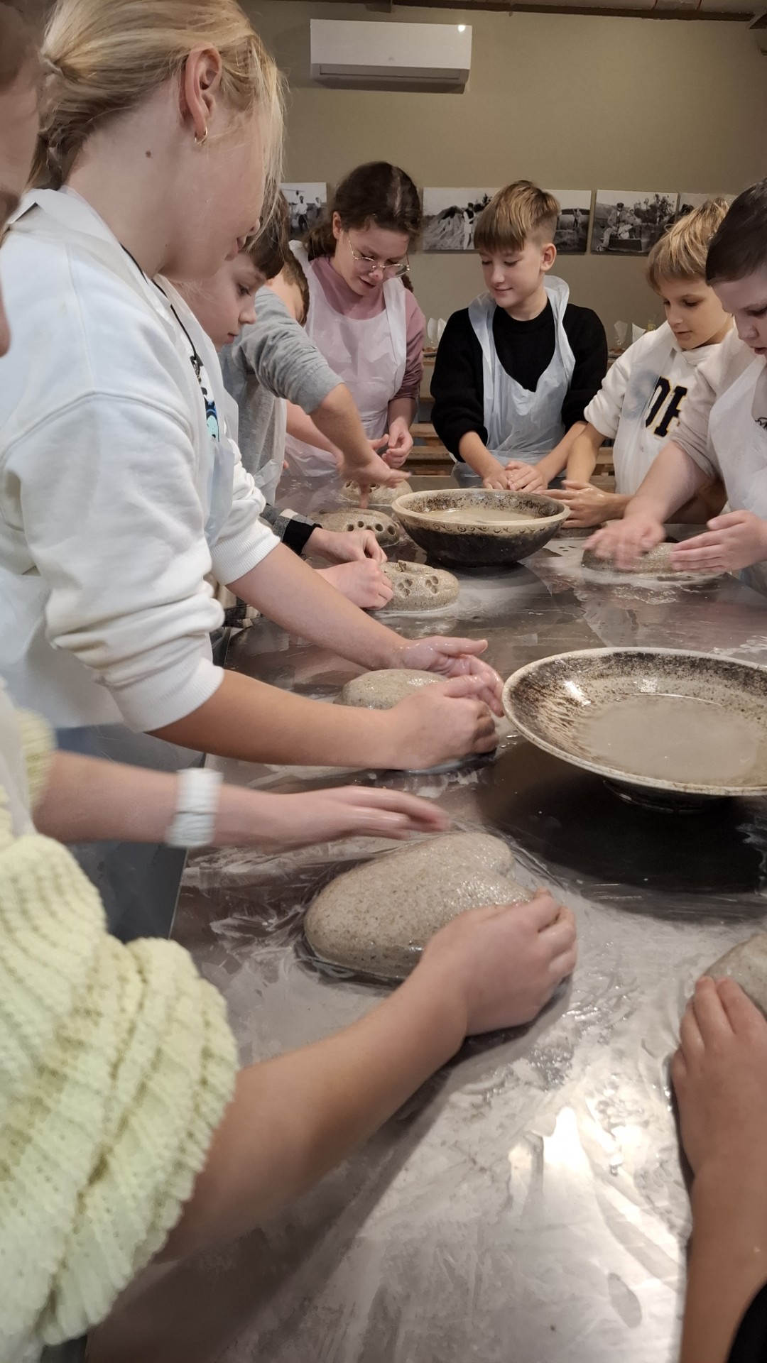 Spalio 29 dieną 4b klasės mokiniai vyko į Radviliškių kaimą dalyvauti edukacijoje „Dalelė tradicijų ant Jūsų stalo“. Jos metu vaikai sužinojo, koks ilgas ir įdomus yra duonos kelias – nuo grūdo iki kvapnios riekelės ant stalo. Edukatorė papasakojo, kas svarbiausia kepant duonelę ir be ko jos neiškepsi. Kol duonelė kepė, mokiniai klausėsi pasakos apie vilką, kuris nenorėjo kepti duonos, ir apžiūrėjo sodyboje pastatytas skulptūras, vaizduojančias visus darbus, kol duona pasiekia stalą. Po edukacijos laukė vaišės – šiltos kaimiškos bandelės, sausainiai ir gira. Mokiniai taip pat sužinojo apie senąsias valstiečių duonos tradicijas, papročius ir ritualus. Aplankė Pašilių stumbryną, pasigrožėjo Krekenavos apylinkėmis iš apžvalgos bokšto. Iš kelionės mokiniai grįžo kupini įspūdžių ir gerų emocijų, pagilinę kultūrinę, pažinimo bei pilietiškumo kompetencijas.