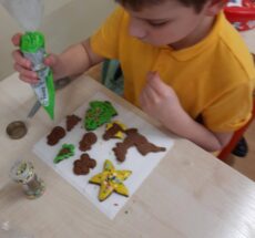 Paskutinę gruodžio savaitę trečiokai skyrė integruotoms veikloms, praktiniams-eksperimentiniams darbams. Mokiniai studijavo įvairius receptus, aiškinosi, kaip kepti imbierinius meduolius, iš ko gaminamas glaistas, domėjosi medžiagų mišiniais: ko, kiek, kaip? Integruotos veiklos metu „Aš ir tu meduolį kepu“ pasinėrė į kūrybines dirbtuves ir margino meduolius klasėje, kiti vyko į Rokiškio krašto muziejų. Visi noriai dalijosi šeimos receptais ruošiantis didžiausioms metų šventėms.