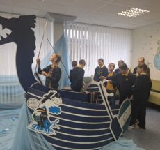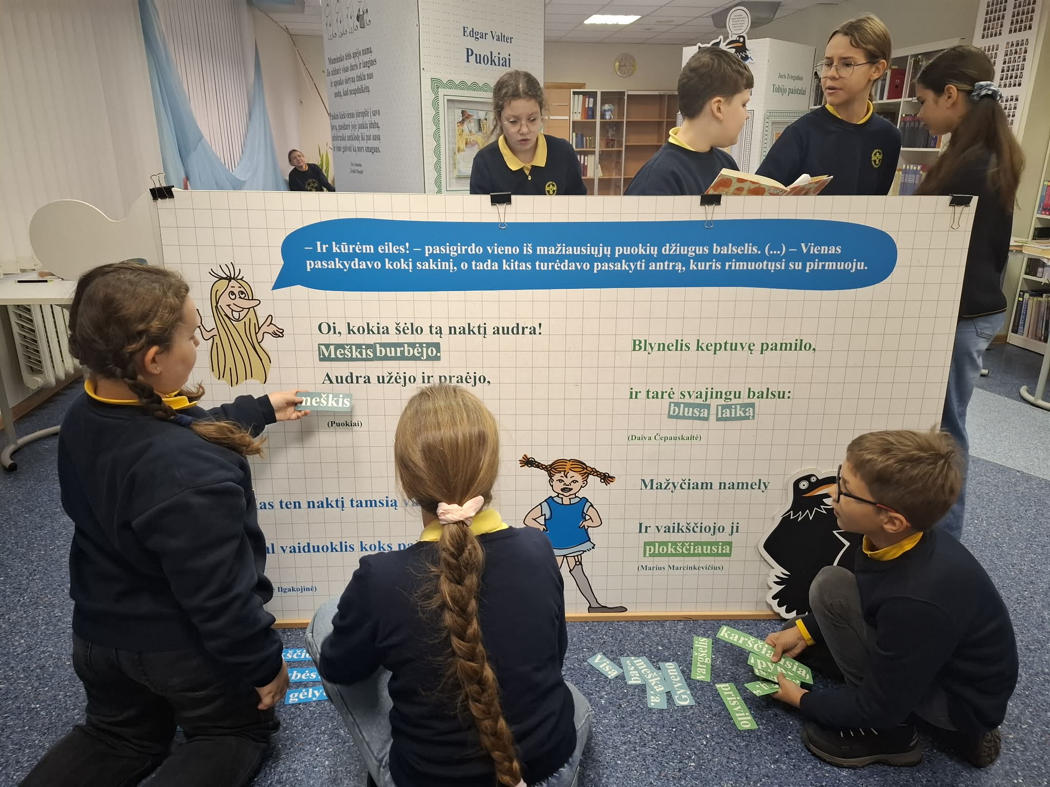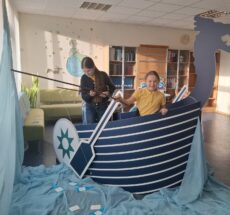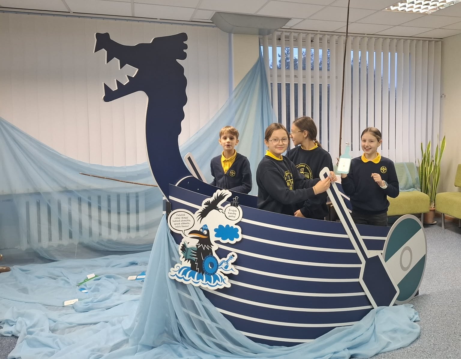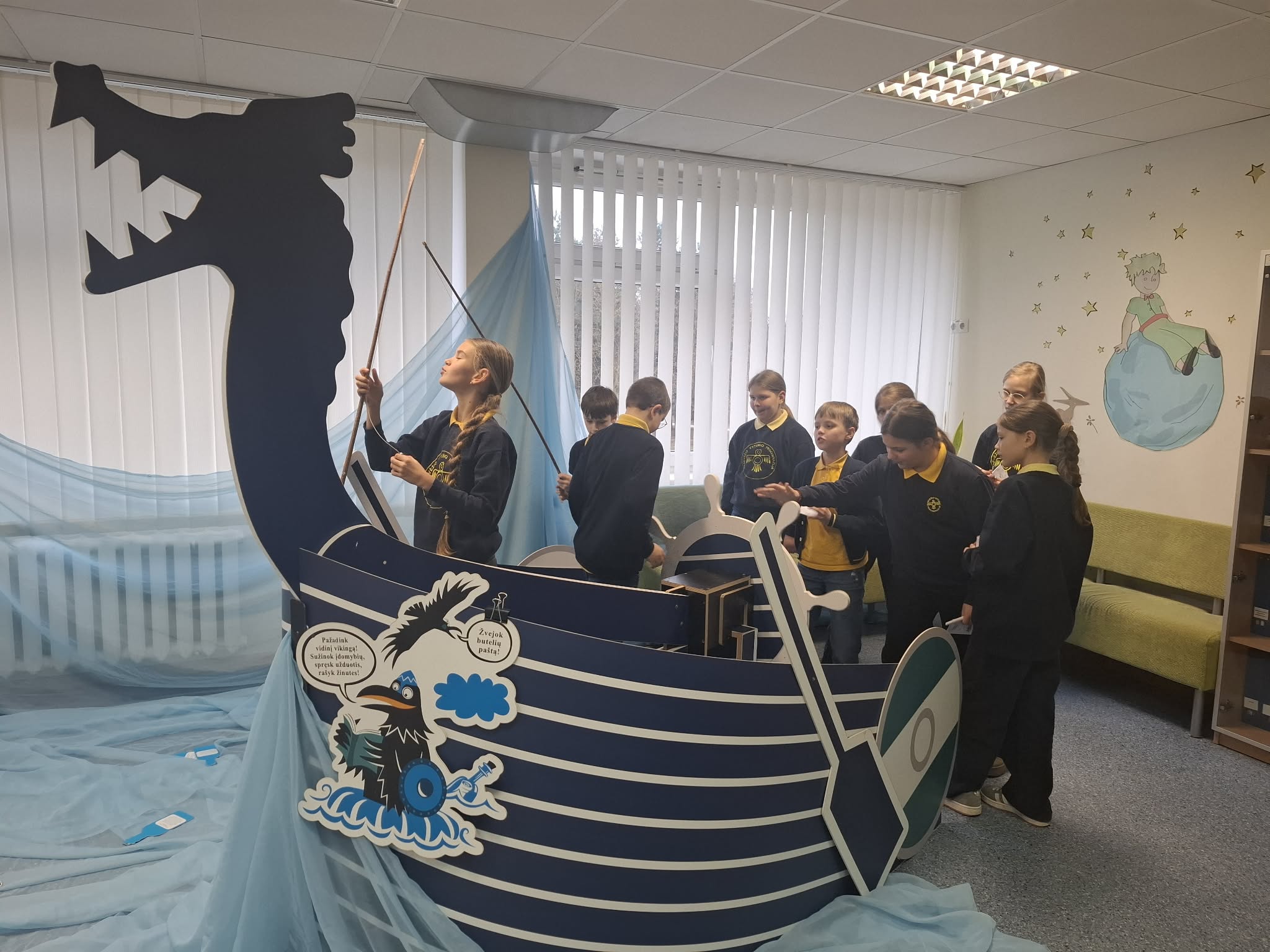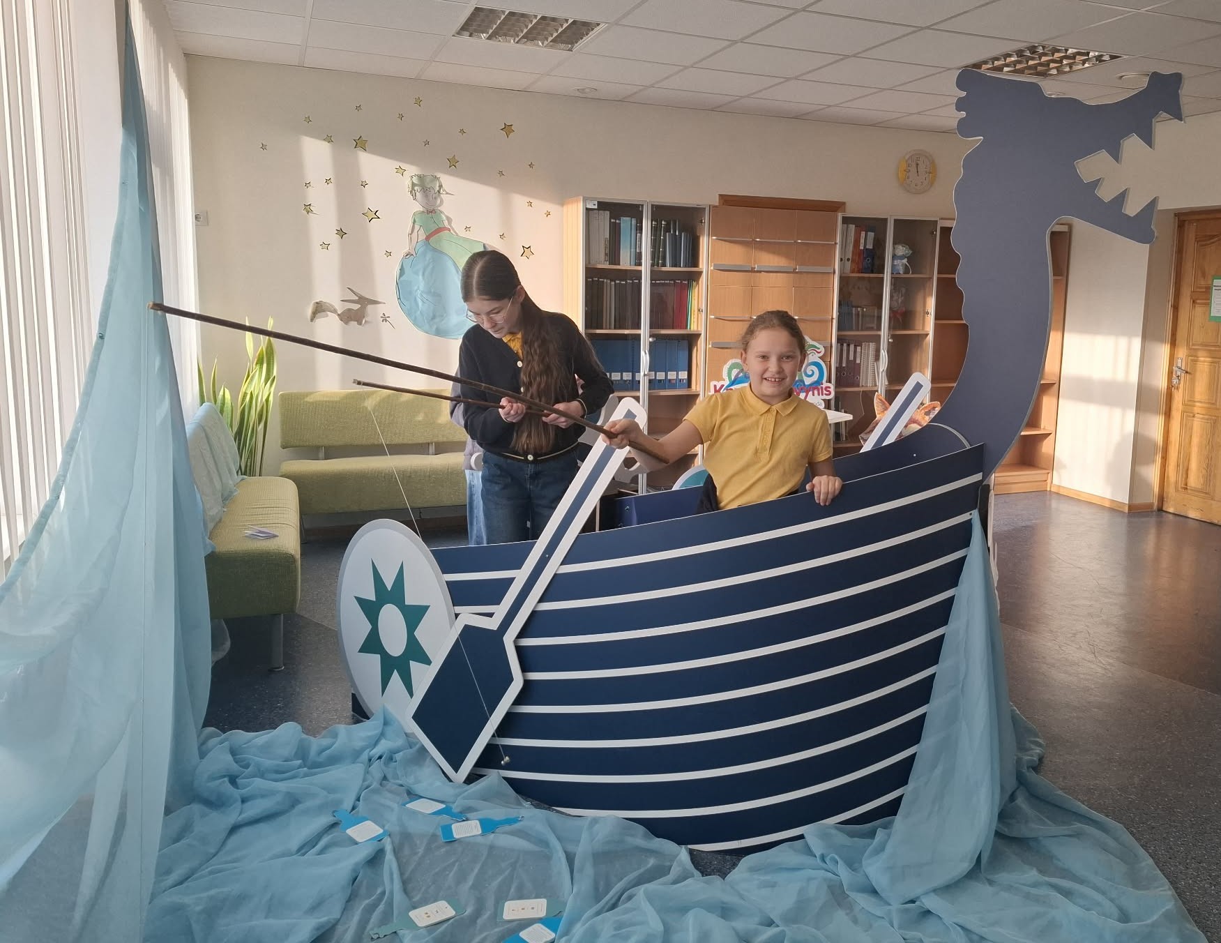 Į „Vyturio” bibliotekos uostą atplaukė laivas iš Šiaurės šalių. Mus jau aplankiusios klasės įsitikino, kad tai ne paprastas laivas, o stebuklingas – pilnas Šiaurės šalių rašytojų knygų ir užduočių. Žvejojame butelius su žinutėmis apie vikingus, kuriame eilėraščius, aiškinamės iš kokios šalies yra atplaukę knygų veikėjai, matuojamės Pepės Ilgakojinės kasas ir elnio Rudolfo ragus, pildome Knygų potvynio kelionės pasus…