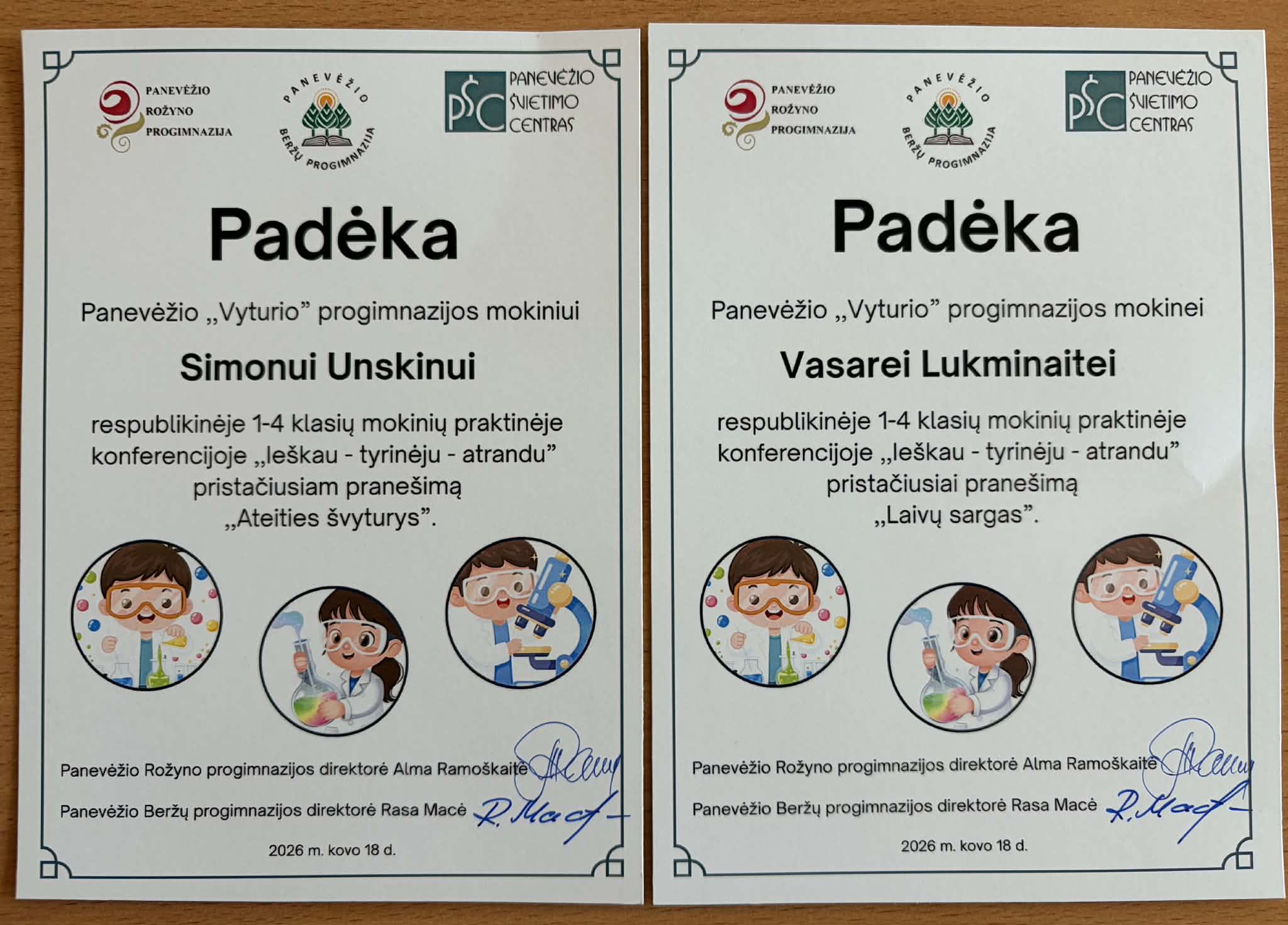 Kovo 18 d. 4c kl. mok. Vasarė Lukminaitė ir Simonas Unskinas dalyvavo respublikinėje 1-4 klasių mokinių praktinėje konferencijoje „Ieškau – tyrinėju – atrandu“, kuri vyko Rožyno progimnazijoje. Konferencijos dalyviai pasidalino STEAM ilgalaikiais/trumpalaikiais projektais, veiklomis – menų (dailės, technologijų, muzikos, šokio), matematikos, lietuvių kalbos ir literatūros, visuomeninio ugdymo, gamtos mokslų ir tyriminės veiklos praktika, pritaikoma įvairiose veiklose (pamokose, popamokinėje veikloje, šventėse ir kt. renginiuose), kurios skatina vaikų kritinį mąstymą, ugdo ir gilina problemų sprendimo, tiriamosios veiklos, bendradarbiavimo bei viešojo kalbėjimo kompetencijas.