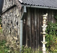 Mūsų edukatorė – tikra visokių amatų meistrė! Žavėjomės popierinėmis karpytomis užuolaidėlėmis, įvairių rūšių keramikos „verbomis“, šaukštų siena, skaičiavome skrynių amžių (joms per 100 metų!). Vėliau buvome pakviesti nusiskinti ir paragauti putino uogų. Viešėdami Ramygaloje aplankėme ir garsųjį Sagų namelį, kur sugalvojome savo norą ir prikalėme prie namo savo sagutes.