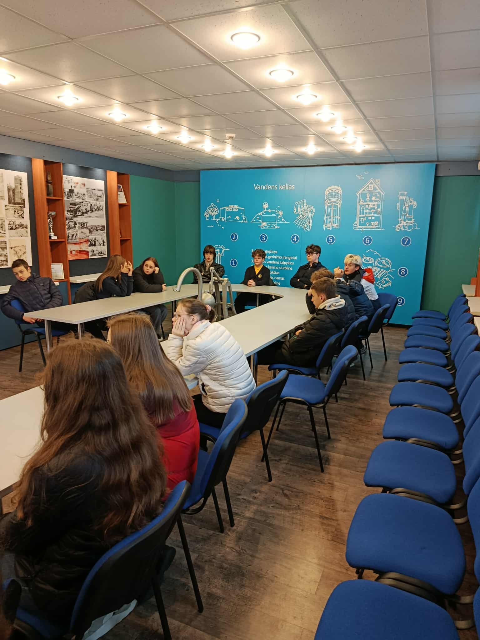 Šiandien 8b klasė lankėsi UAB „Aukštaitijos vandenys”. Tai buvo įdomi ir naudinga edukacija. Iš pradžių sužinojome apie vandens svarbą žmonėms visame pasaulyje ir pasidžiaugėme, kad gyvename šalyje, kurioje turime daug švaraus geriamojo vandens. Vėliau aiškinomės, kaip vanduo atkeliauja iki mūsų namų čiaupų, pamatėme vandens valymo procesą, net paragavome vandens tiesiai iš gręžinio. Edukacijos pabaigoje aplankėme nebenaudojamą vandens rezervuarą, kuriame galėjome pasivaikščioti ir geriau suprasti, kur prasideda vandens kelias iki kiekvieno panevėžiečio namų.