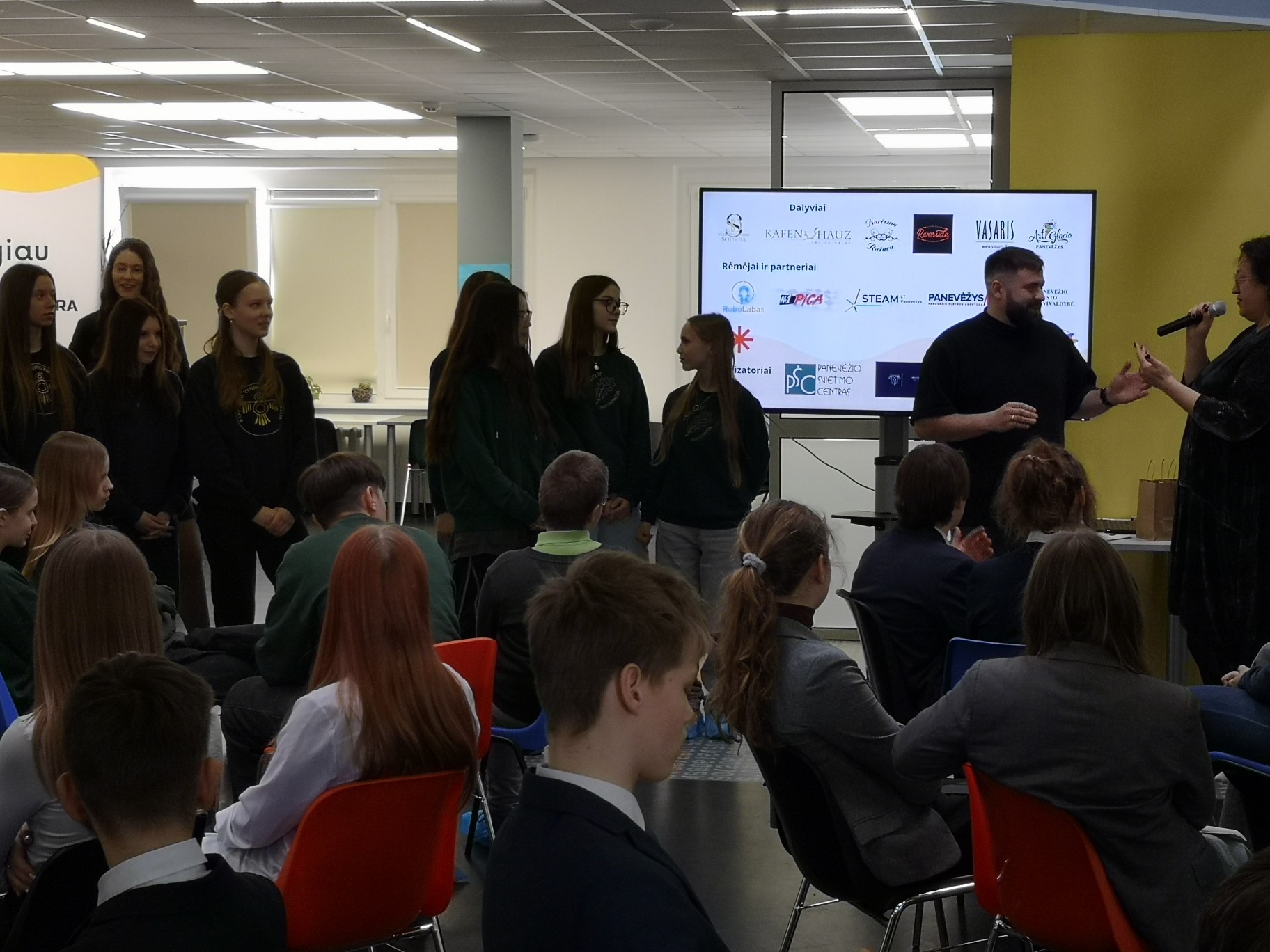 Kovo 5-ąją dieną 8a klasės keturios merginos Rusnė Balčikonytė, Faustėja Balčiūnaitė, Ieva Černytė, Gabija Jackevičiūtė keliavo į Panevėžio robotikos centrą „RoboLabas“ nusiteikusios rungtyniauti “Kulinarinėje lygoje 2026”. Ten komanda atsakinėjo į klausimus, turėjo atspėti ir įvardinti prieskonių ir miltų rūšis. Puikiai pasirodžiusios pateko į finalą ir gavo iššūkį – užduotį „Japonijos įkvėpta futuristinio maitinimo idėja Panevėžui“ . Ją sugalvojo Michelin virtuvės šefas Valdas Keršulis. Išspręstų iššūkių pristatymo renginys vyks gegužės 13 dieną restorane „Vasaris“ . Ruošimės, konsultuosimės su Michelin virtuvės šefu Valdu Keršuliu ir lauksime finalo.