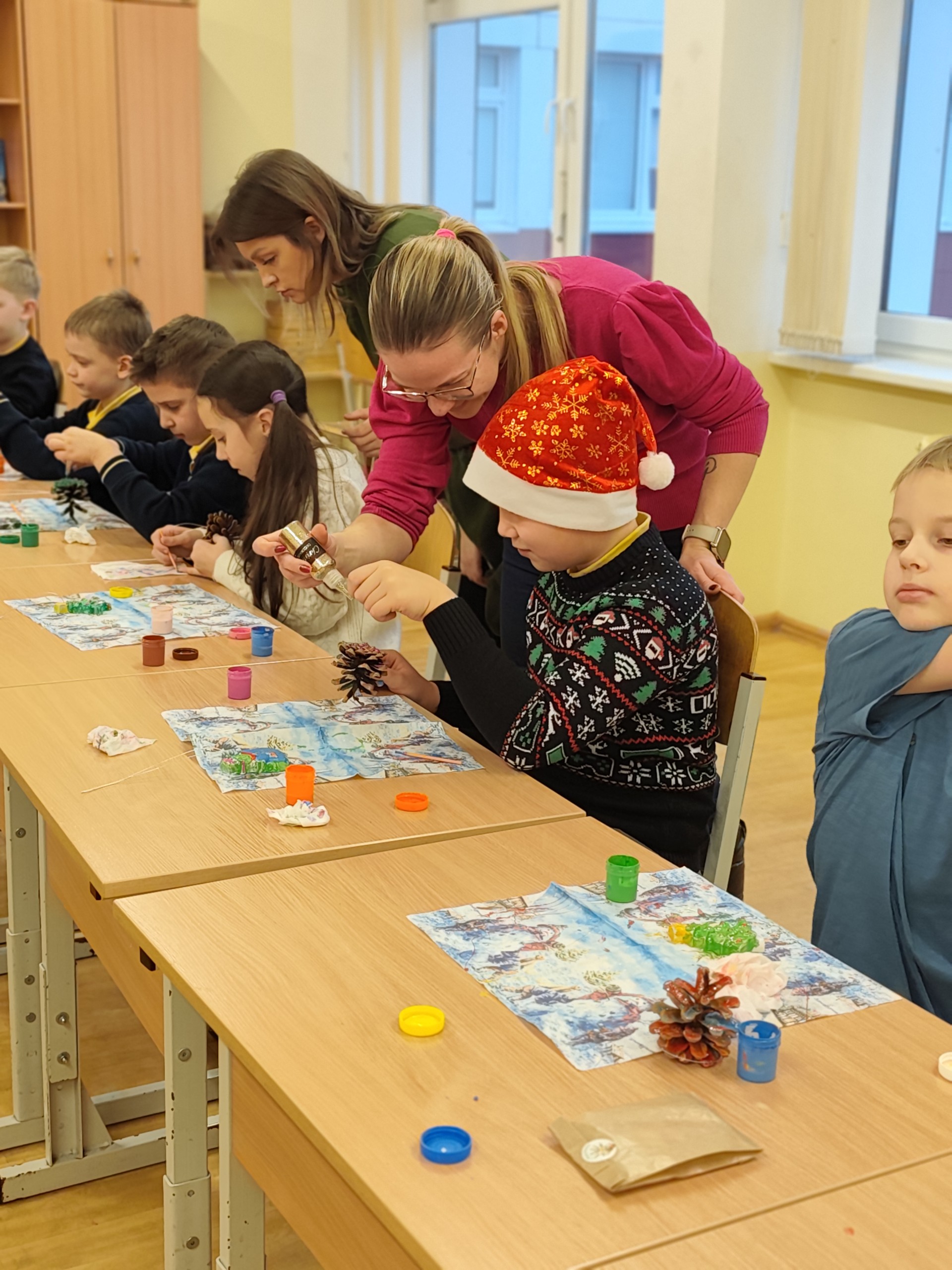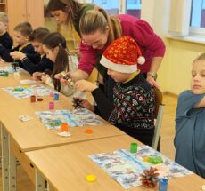 Gruodžio 18-osios rytą mokiniai dalyvavo kūrybinėse veiklose. Specialistės Gintarė, Ramunė, Vaiva, Indrė, Judita, Rita ir Birutė paruošė dviejų rūšių kalėdinius žaisliukus – iš gipso ir kankorėžių. Vaikai juos ne tik dekoravo, bet ir lavino kūrybiškumą, smulkiąją motoriką, dėmesio koncentraciją, sensorinius pojūčius bei emocinę saviraišką.