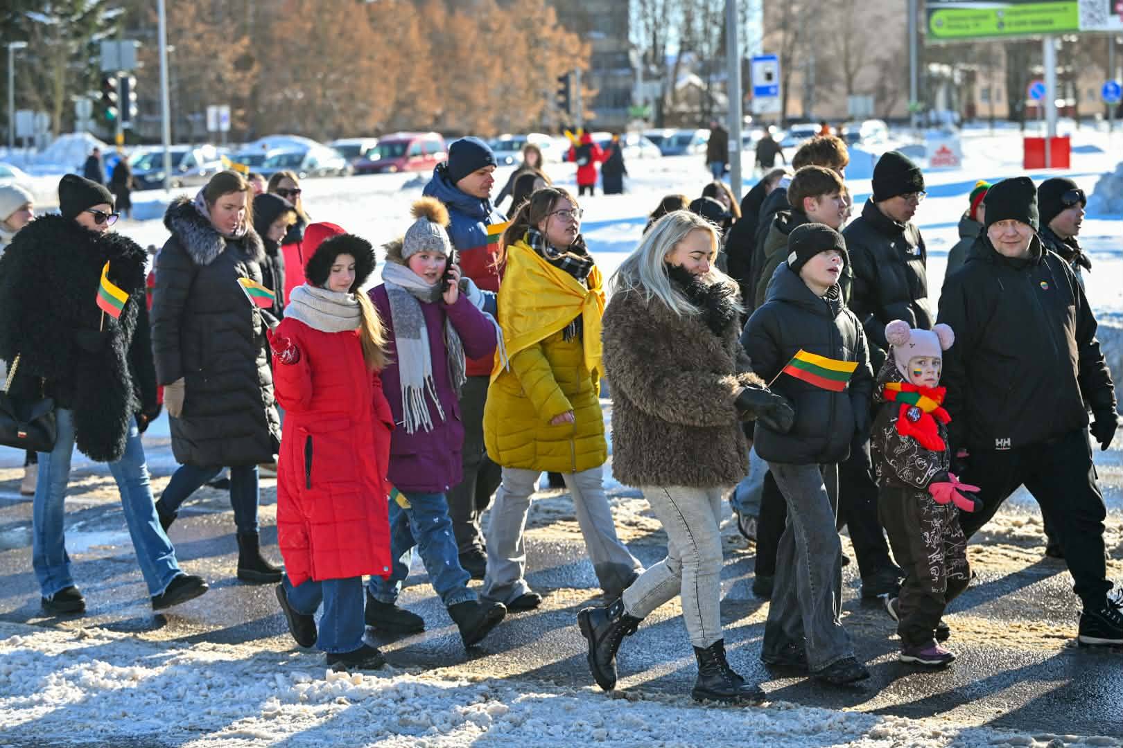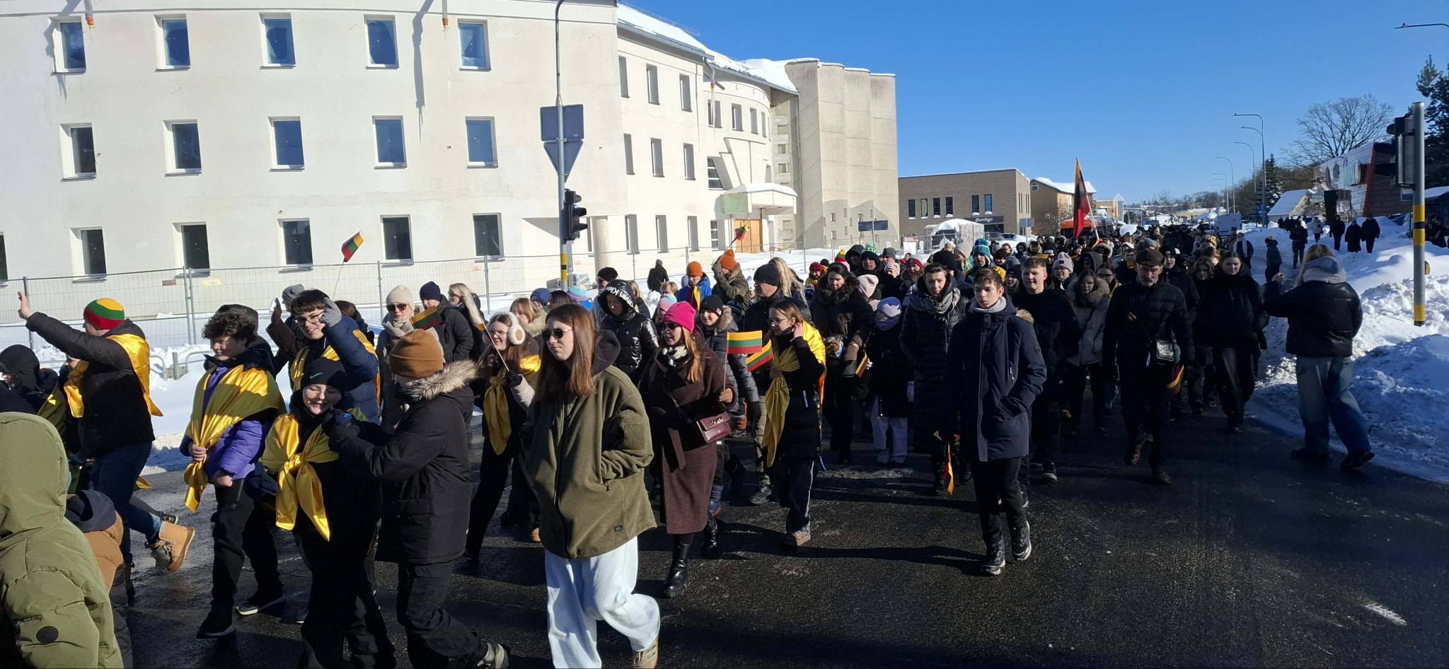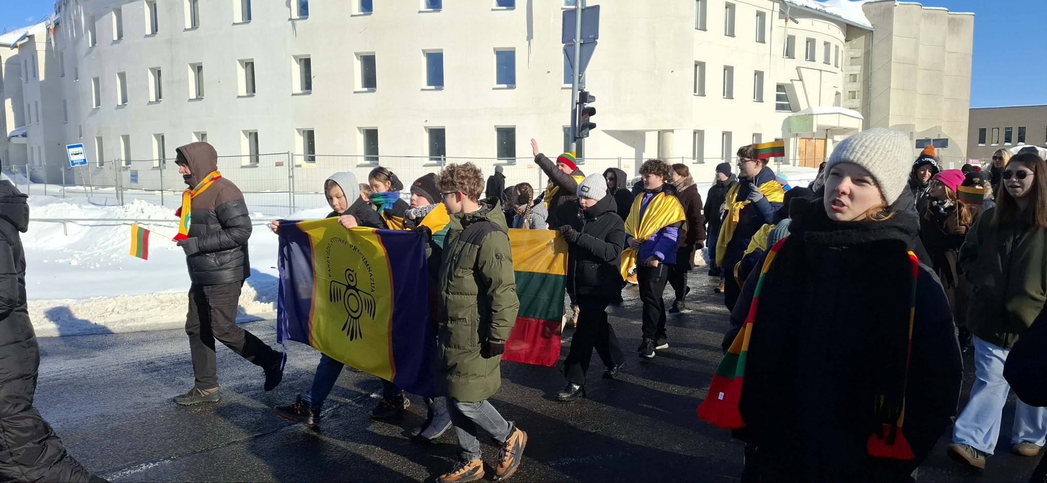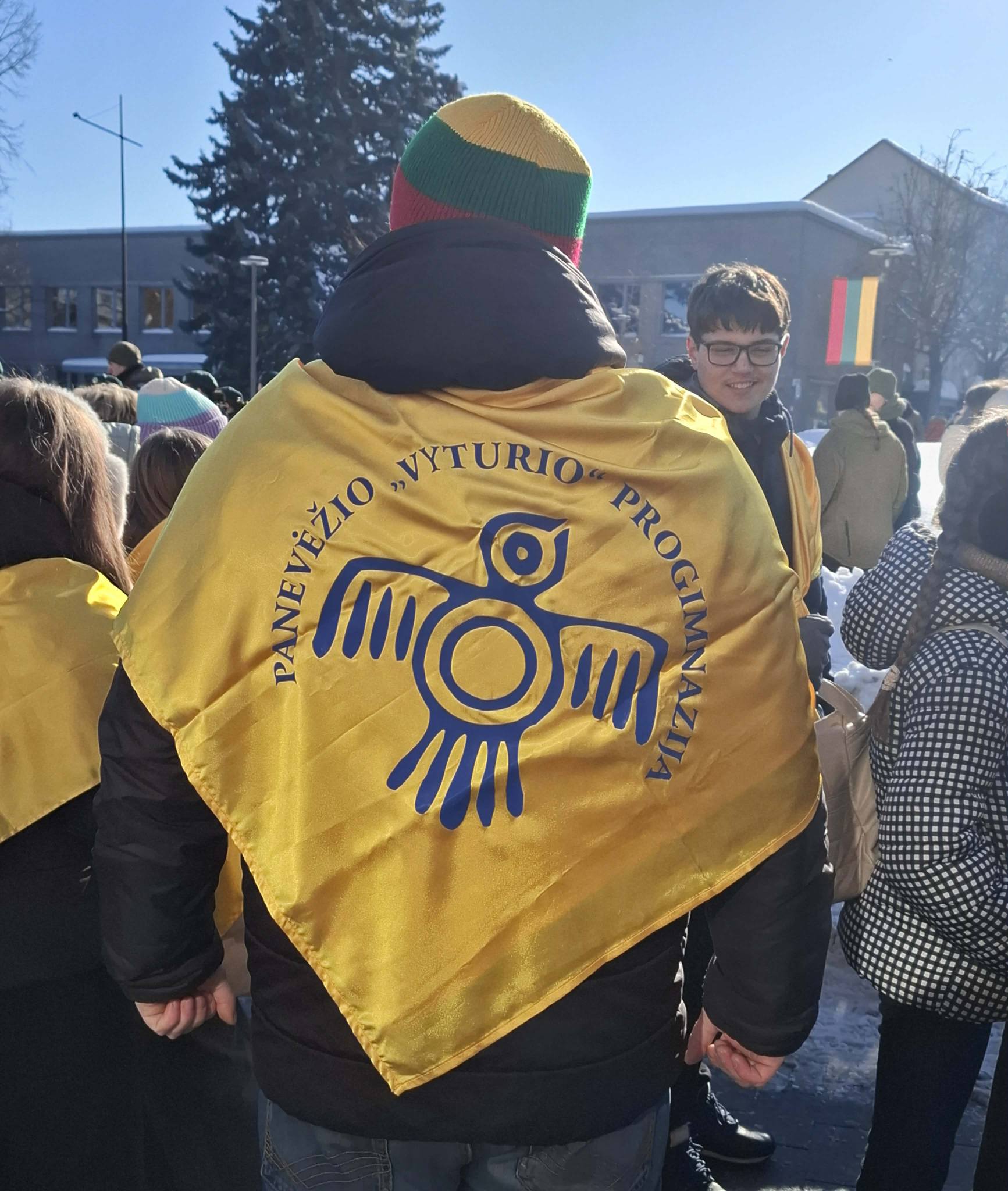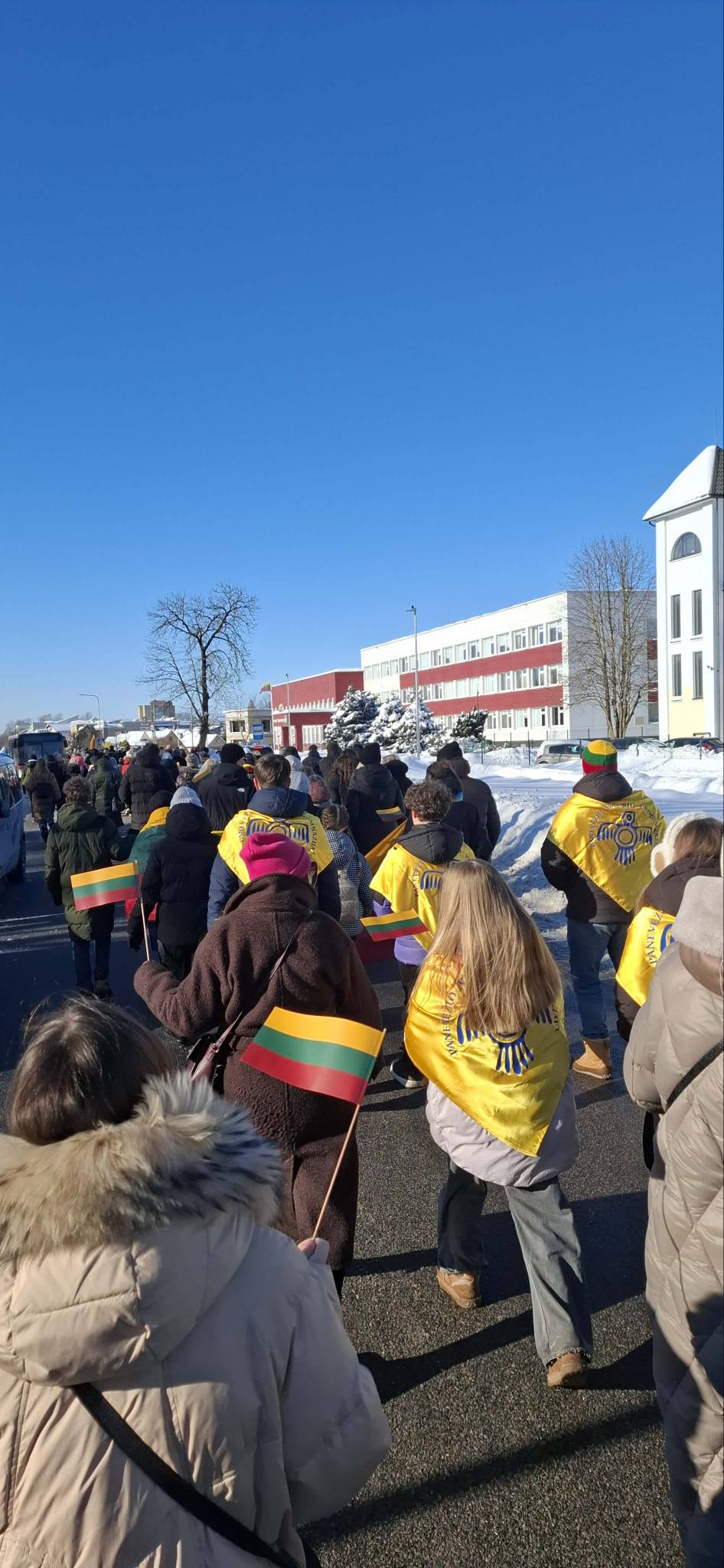Saulėtą, kupiną sniego dieną „Vyturio” progimnazijos bendruomenė susirinko į šventinę Vasario 16-osios eiseną. Ši eisena tapo gražia mokyklos tradicija, kurioje kasmet įrodome ne tik savo bendruomenės vienybę bei bendrystę, bet ir meilę savo šaliai, džiaugsmą, jog esame laisvi.