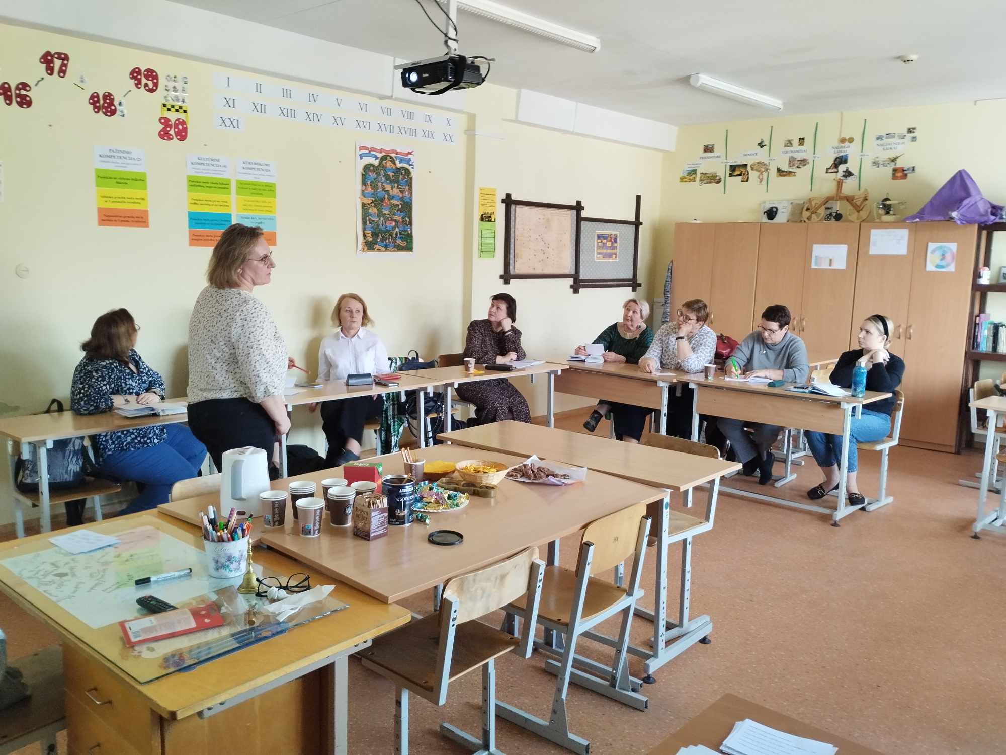 Balandžio 9 dieną  mokytojos Daiva ir Oksana su miesto lietuvių kalbos ir istorijos mokytojais dalinosi patirtimi 13 kl. pamokoje ,,Mokomės kurti istorinį pasakojimą”.