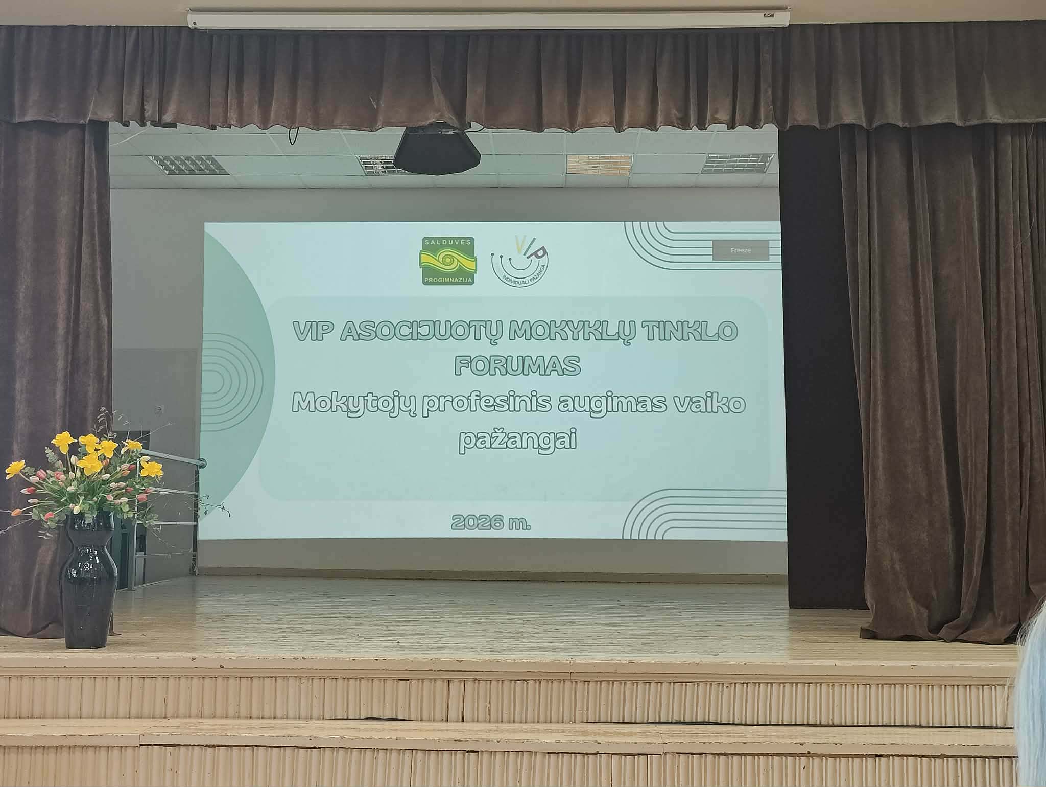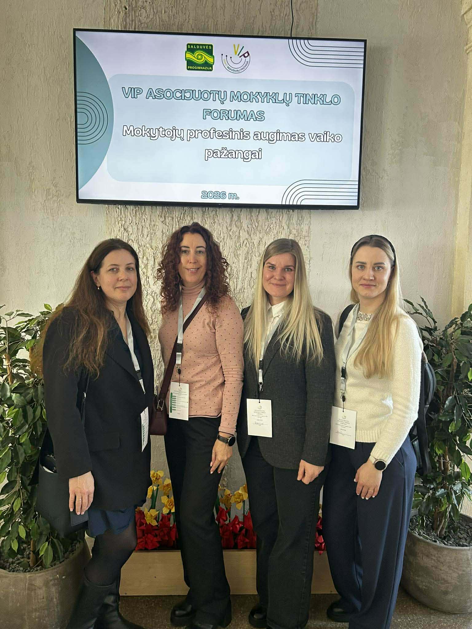 Vasario 17d. mokyklos komanda Inga, Birutė,Ramūnė ir Oksana dalyvavo tradiciniame Vaiko individualios pažangos (VIP) asocijuotų mokyklų tinklo forume ,,Mokytojų profesinis augimas vaiko pažangai”, kurio organizavimo tikslas- dalintis mokinių individualios pažangos vertinimo ir kitomis patirtimis tarp tinklo ir kitų šalies mokyklų nacionaliniu mastu. Forumo metu ne tik reflektuotos mokyklų patirtys, diskutuota probleminiais klausimais, aptartos aktualijos, bet ir įsitraukta į Vilniaus universiteto mokslininkų atliekamą tyrimą apie pedagogų profesinį tobulėjimą.