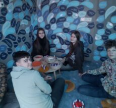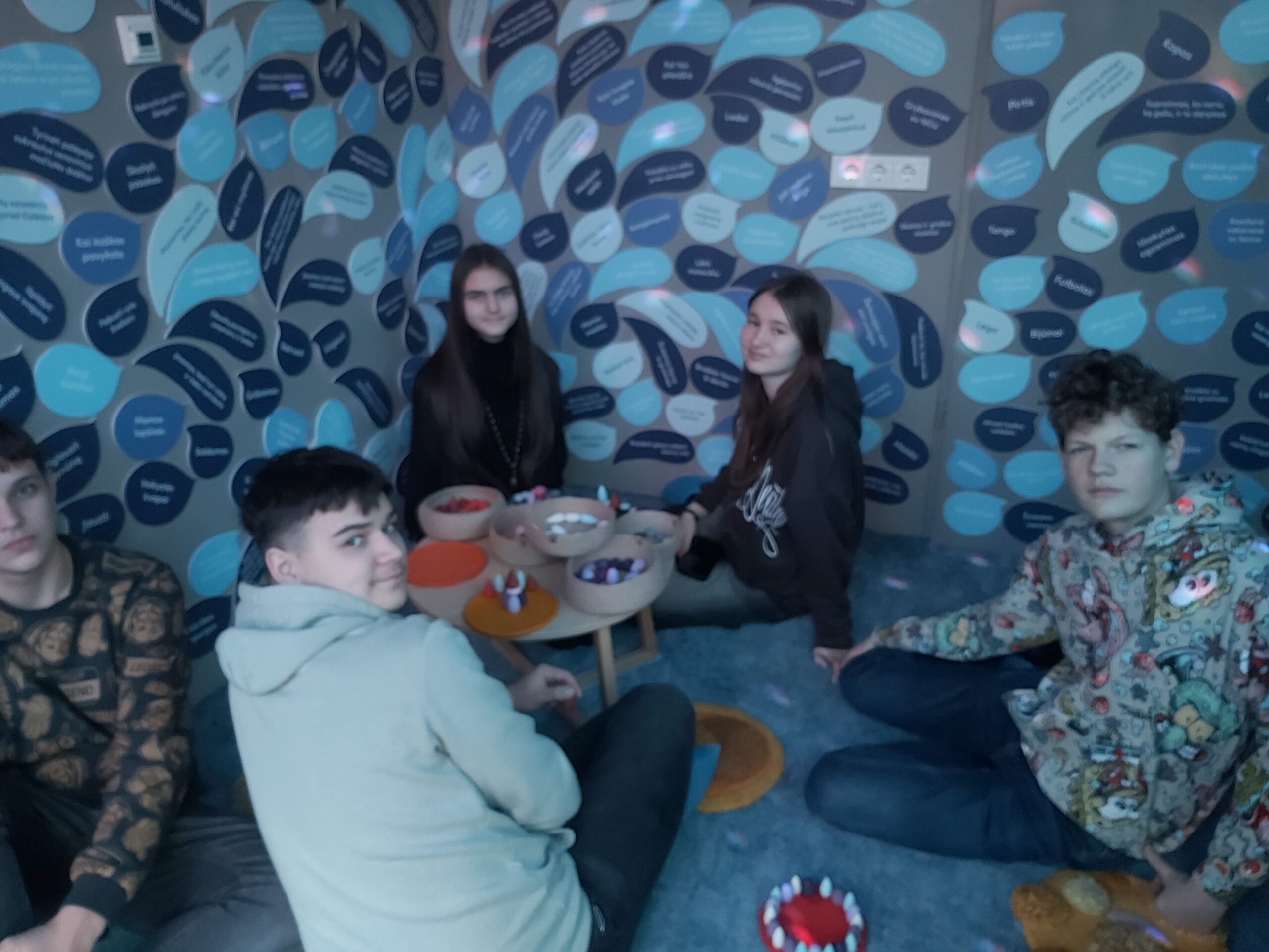 Gruodžio 4 dieną 8a klasės mokiniai gyvenimo įgūdžių praktines veiklas atliko Anykščių Jausmų muziejuje. Mokiniai mokėsi įsigilinti į savo vidinį pasaulį, tyrinėjo jausmų atspalvius, jų ryšį su poreikiais ir patirtimi.Ugdėsi socialinę ir emocinę bei komunikavimo kompetencijas, dalyvaudami komunikavimo situacijose.Veikdami kartu mokiniai mokėsi gerbti kitų nuomones, reikšti, valdyti emocijas ir sukūrė šviečiančius tamsoje jausmų žodynus.