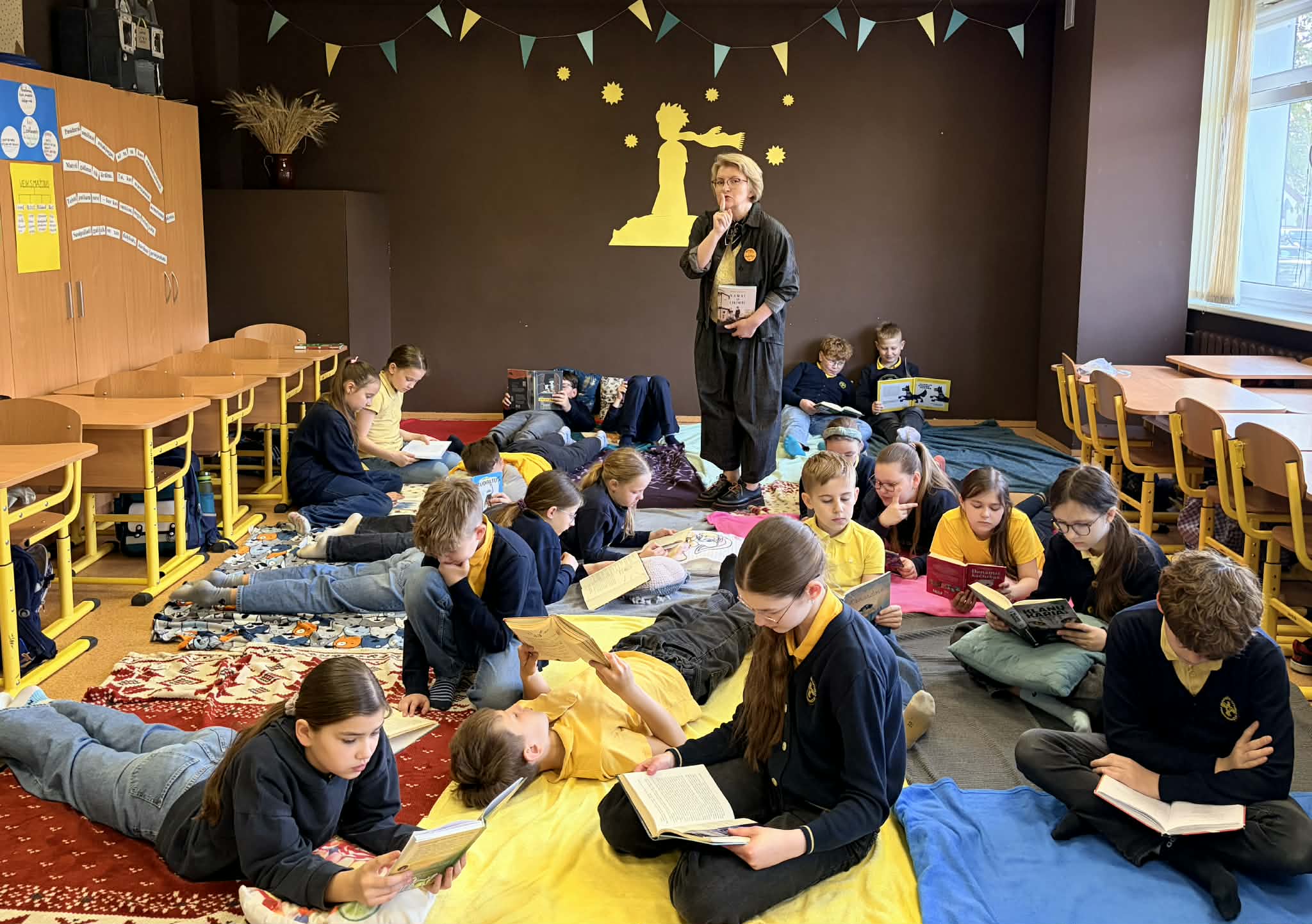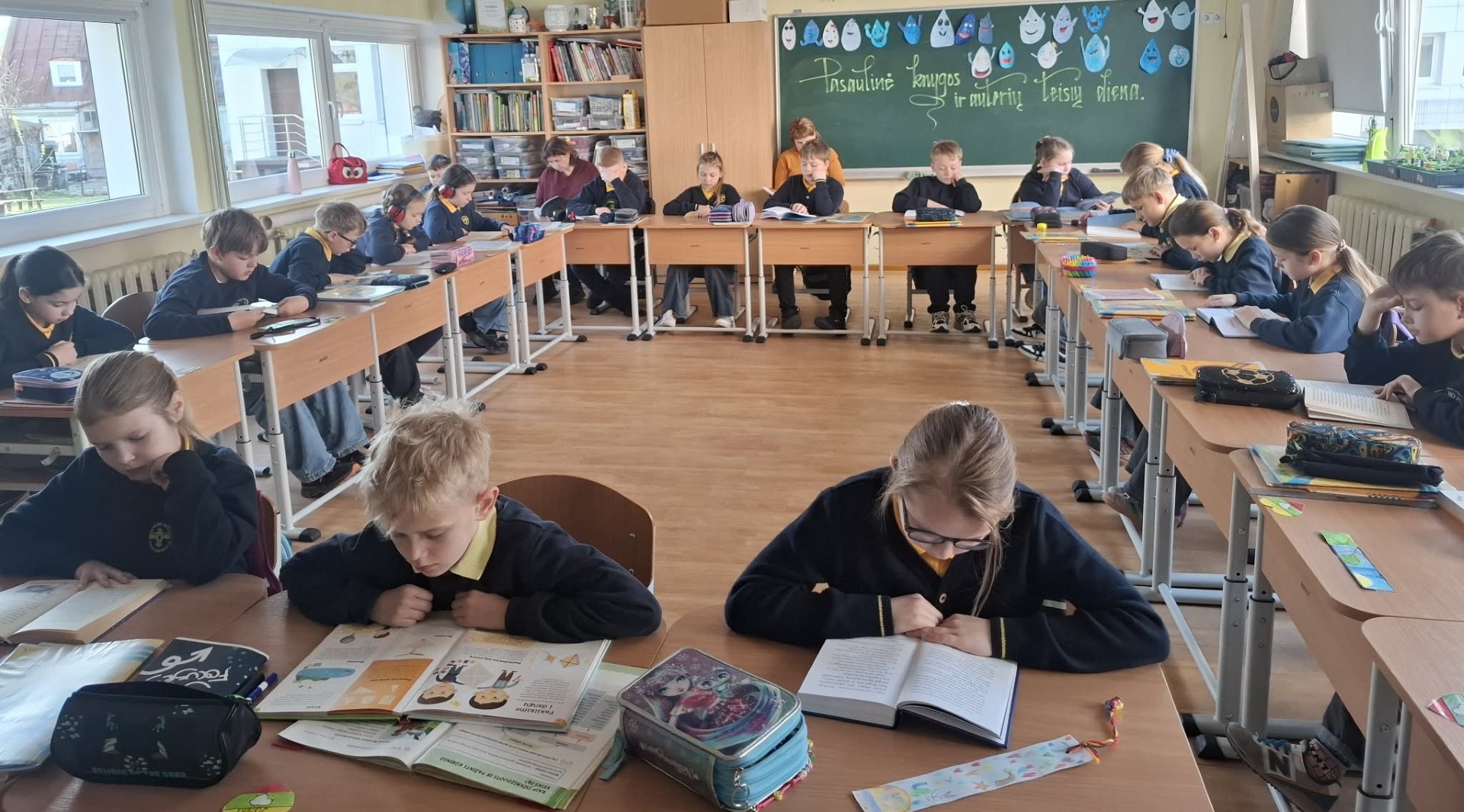 Balandžio 23 d. – Pasaulinę knygos ir autorių teisių dieną – paminėjome skaitydami knygas. Skaitymo ambasadorė Rūta Elijošaitytė – Kaikarė kviečia mokyklose puoselėti Skaitymo valandėlę. Mūsų mokykla jungiasi prie šalies iniciatyvos – tad pirmoji pamoka buvo skirta skaityti tai, kas patinka, atsinešti savo knygą, pasiūlyti draugams, pasidalinti mintimis ir kartu augintis skaitymo kultūrą.
