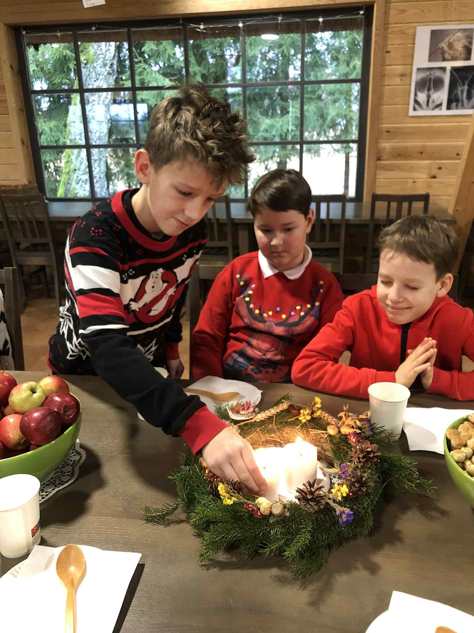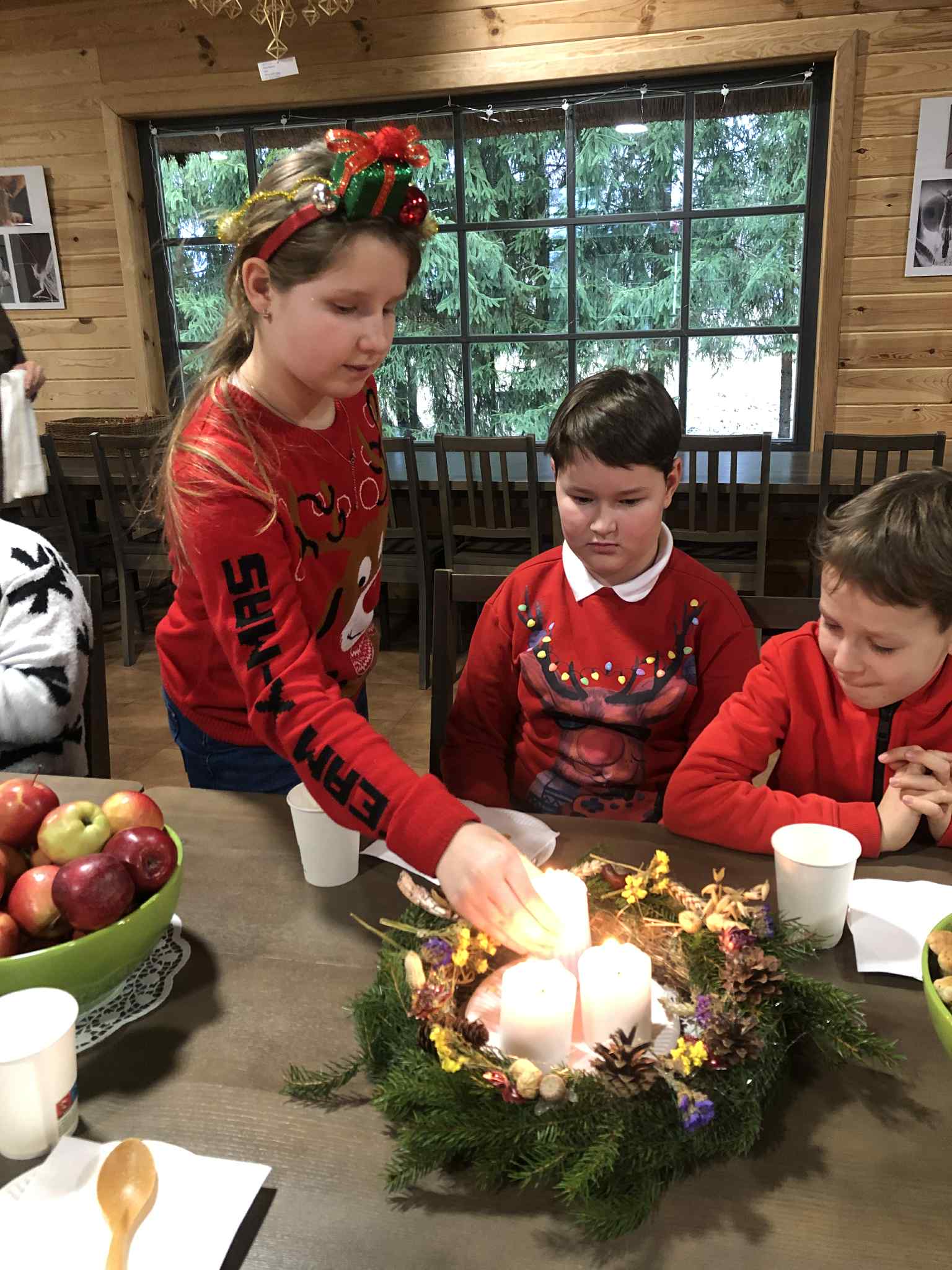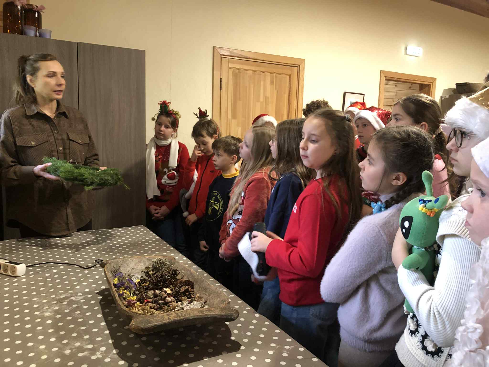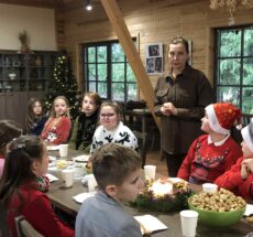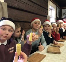 Gruodžio 22 d. 4c klasės mokiniai dalyvavo STEAM edukacinėje programoje „Prie balto šv. Kūčių stalo“, kuri vyko Adomo Petrausko muziejuje (Uoginių km., Kupiškio raj.). Mus pasitiko gaspadinė ir pasikvietė gryčion. Mokiniai susipažino su adventinio laikotarpio tradicijomis ir, padedami gaspadinės, prie senovinio pečiaus gamino kūčiukus. O kaip įdomu buvo visiems pasigaminti po vaško žvakelę! Paskui keliavome į klėtį, kur mūsų laukė kita gaspadinė. Čia mokiniai gamtinėmis gėrybėmis puošė adventinį vainiką ir Kalėdų eglutę. Gaspadinė mums pristatė tradicinius šv. Kūčių vakarienės valgius, kuriuos galiausiai visi ragavome. Patiekalas, kuris iškart dingo nuo stalo – virtos bulvės su lupenomis, kurias galėjome pasidažyti į kanapių bei linų sėmenų mišinį. Įdomu buvo ragauti senovinį patiekalą – kūčią, gerti aguonpienį. Vaikai prisipažino, kad kai kuriuos patiekalus valgė pirmą kartą ir sakė, kad paprašys mamyčių ir močiučių, jog namuose tokius patiekalus pagamintų. Padėkoję gaspadinėms už vaišes bėgome į kiemą ieškoti, kur voverytė paslėpė Kalėdų Senelio dovanas. Nereikėjo nei užuominų, dovanos kaip mat buvo surastos! Linksmai klegėdami patraukėme namo. Visi džiaugėmės, nes ši klasės kelionė buvo nepamirštama. Dėkojame klasės tėveliams.