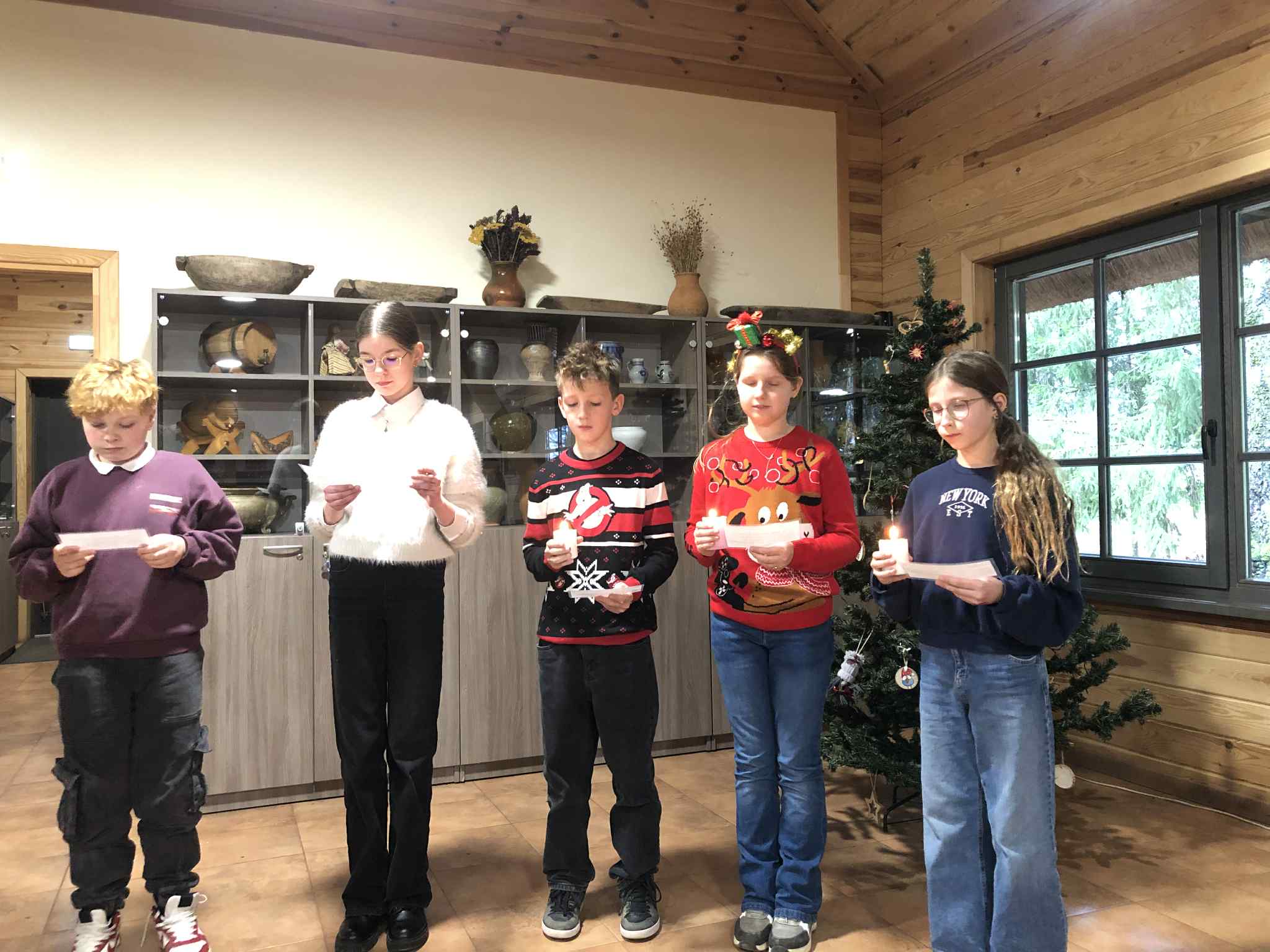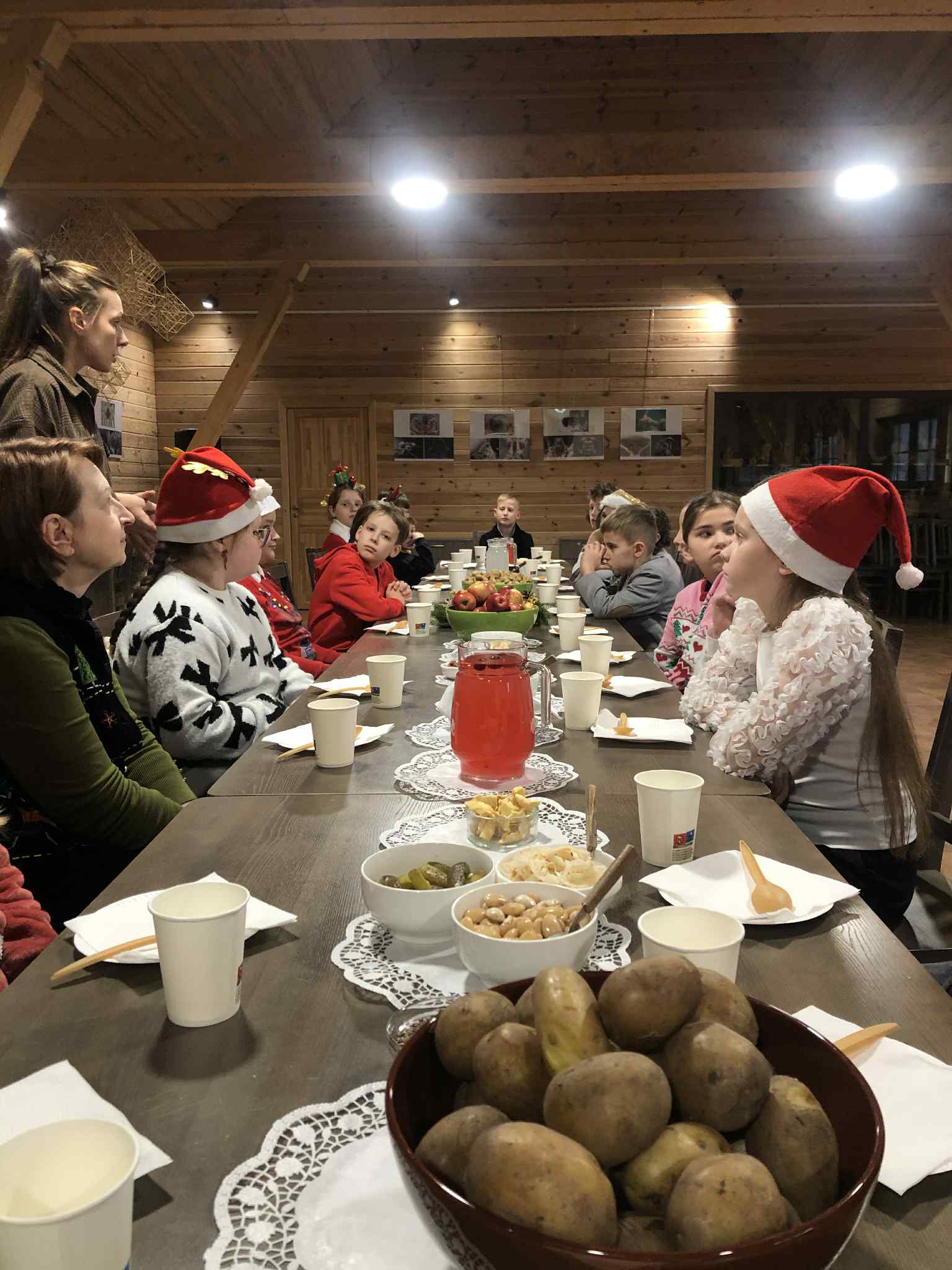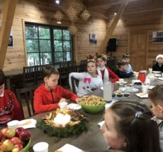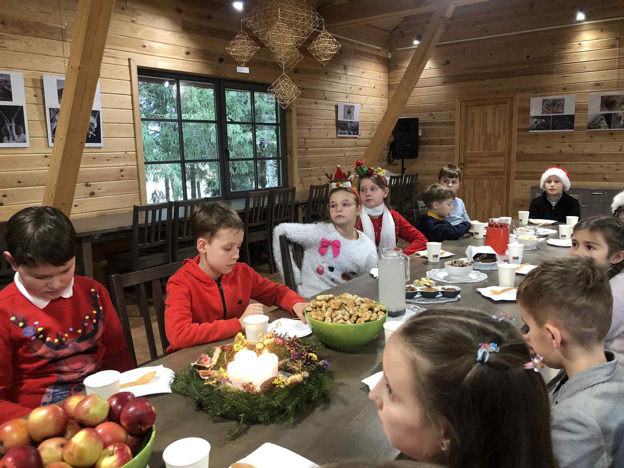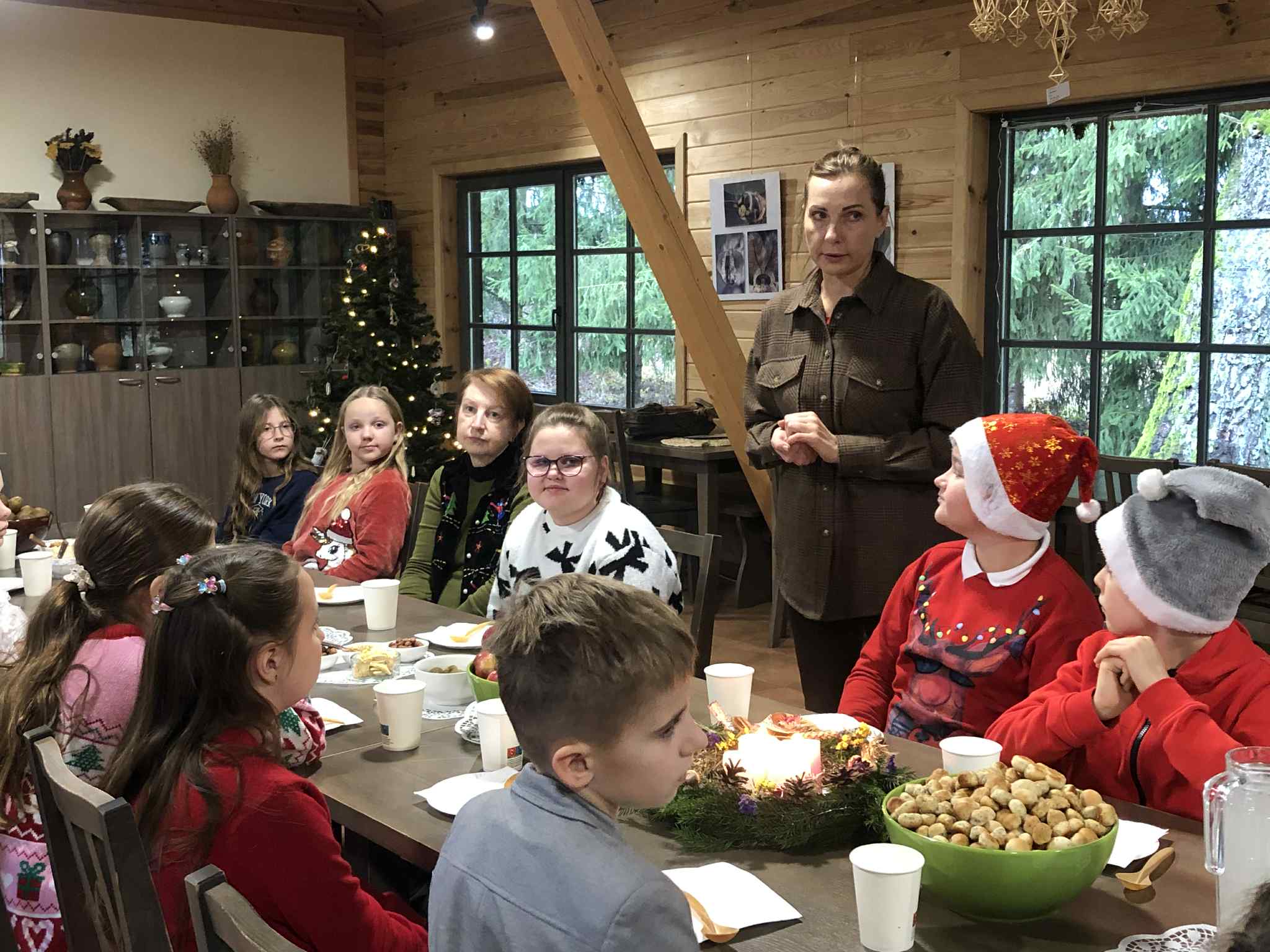 Gruodžio 22 d. 4c klasės mokiniai dalyvavo STEAM edukacinėje programoje „Prie balto šv. Kūčių stalo“, kuri vyko Adomo Petrausko muziejuje (Uoginių km., Kupiškio raj.). Mus pasitiko gaspadinė ir pasikvietė gryčion. Mokiniai susipažino su adventinio laikotarpio tradicijomis ir, padedami gaspadinės, prie senovinio pečiaus gamino kūčiukus. O kaip įdomu buvo visiems pasigaminti po vaško žvakelę! Paskui keliavome į klėtį, kur mūsų laukė kita gaspadinė. Čia mokiniai gamtinėmis gėrybėmis puošė adventinį vainiką ir Kalėdų eglutę. Gaspadinė mums pristatė tradicinius šv. Kūčių vakarienės valgius, kuriuos galiausiai visi ragavome. Patiekalas, kuris iškart dingo nuo stalo – virtos bulvės su lupenomis, kurias galėjome pasidažyti į kanapių bei linų sėmenų mišinį. Įdomu buvo ragauti senovinį patiekalą – kūčią, gerti aguonpienį. Vaikai prisipažino, kad kai kuriuos patiekalus valgė pirmą kartą ir sakė, kad paprašys mamyčių ir močiučių, jog namuose tokius patiekalus pagamintų. Padėkoję gaspadinėms už vaišes bėgome į kiemą ieškoti, kur voverytė paslėpė Kalėdų Senelio dovanas. Nereikėjo nei užuominų, dovanos kaip mat buvo surastos! Linksmai klegėdami patraukėme namo. Visi džiaugėmės, nes ši klasės kelionė buvo nepamirštama. Dėkojame klasės tėveliams.