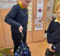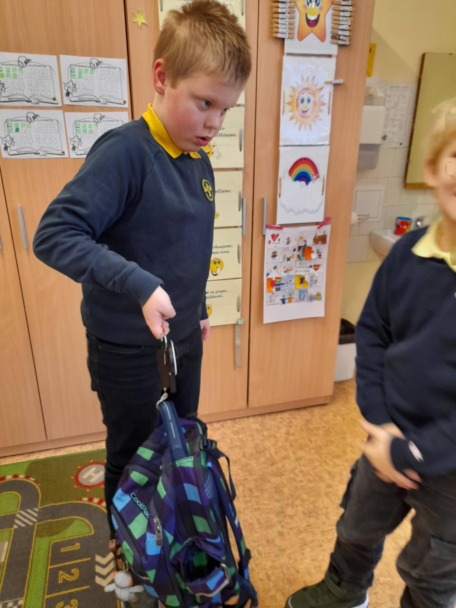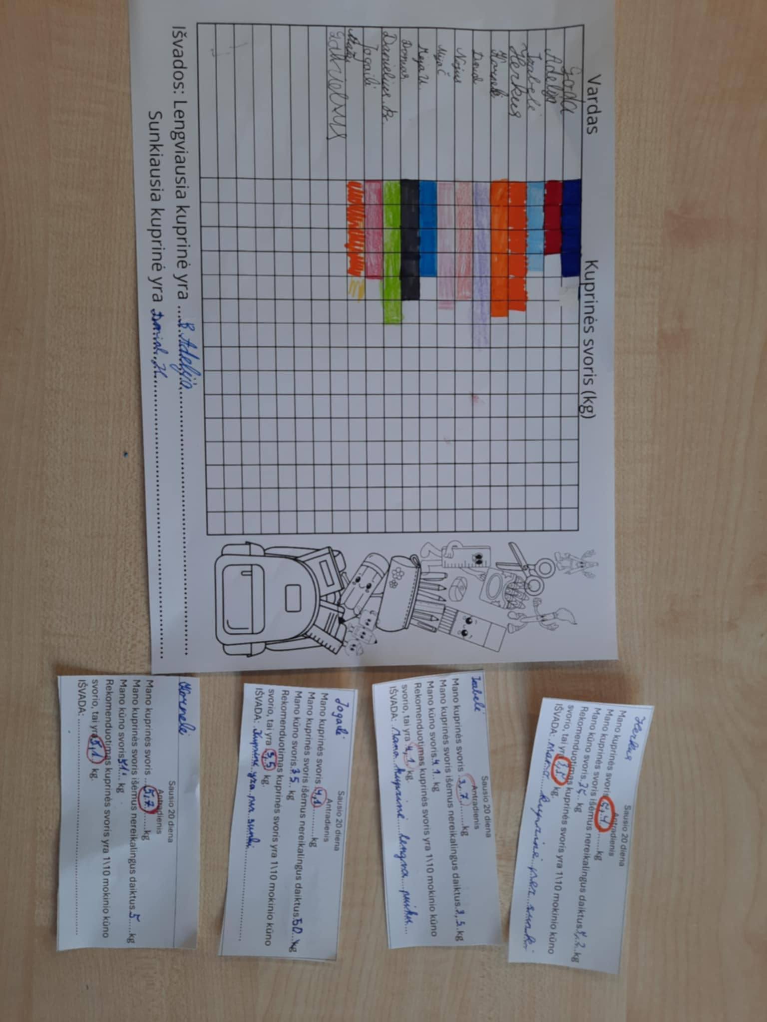 Sausio mėnesį trečiokai atliko integruotas veiklas „Kiek sveria mano kuprinė?” ir „Dienos laikrodis”. Mokiniai svėrė savo ir draugų kuprines, fiksavo duomenis lentelėse, braižė diagramas, o pagal pateiktą vaiko masės ir kuprinės masės santykio lentelę nustatė, kurios kuprinės yra tinkamo svorio. Dar trečiokai kūrė kuprinių dizainus, piešė priemones, kurios būtinos. Žinias apie trupmenas įtvirtino vaizduodami savo dienos veiklų trukmę skritulinėse diagramose.