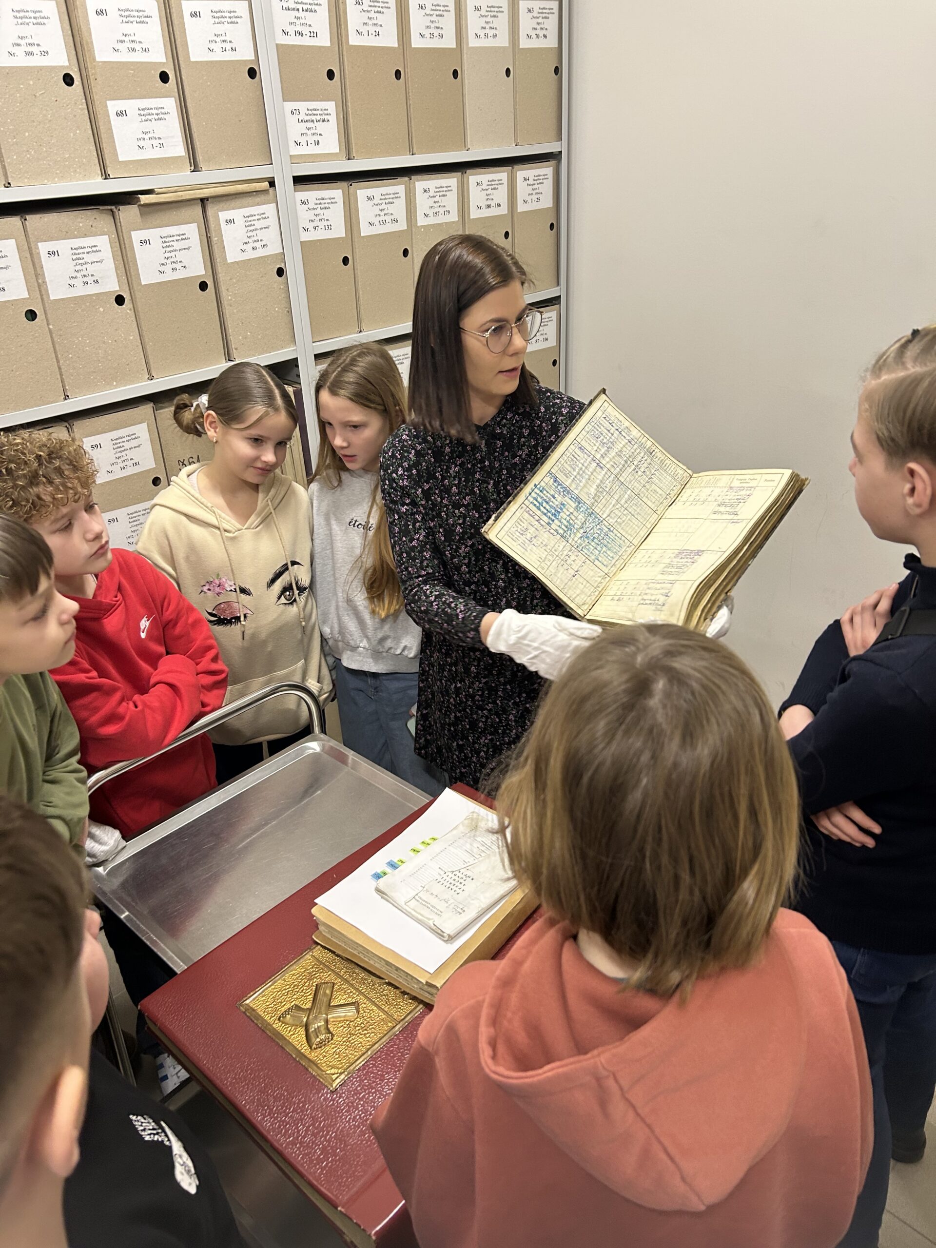 Antrąją dieną mokiniai leidosi į pažintinį vizitą Panevėžio archyve. Ten jie ne tik pamatė milžiniškus dokumentų kiekius, bet ir sužinojo, kad archyvo darbuotojai dokumentus skaičiuoja ne vienetais, o… kilometrais!